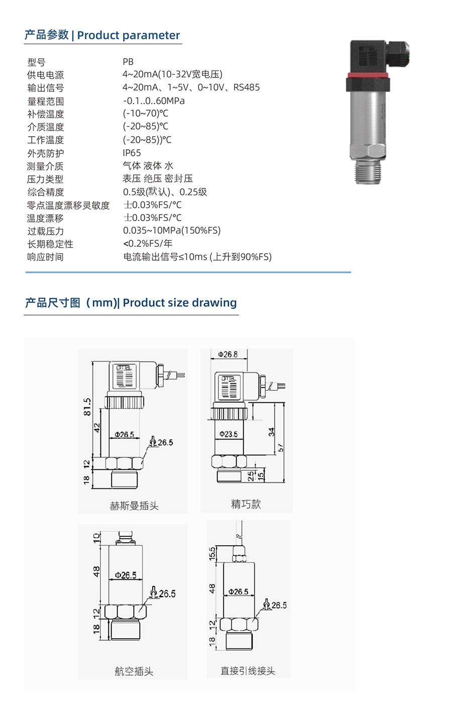 壓力變送器是工業(yè)實踐中最為常用的一種傳感器,其廣泛應用于各種工業(yè)自控環(huán)境,涉及水利水電、鐵路交通、智能建筑、生產(chǎn)自控、航空航天、軍工、石化、油井、電力、船舶、機床、管道等眾多行業(yè)。